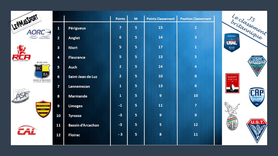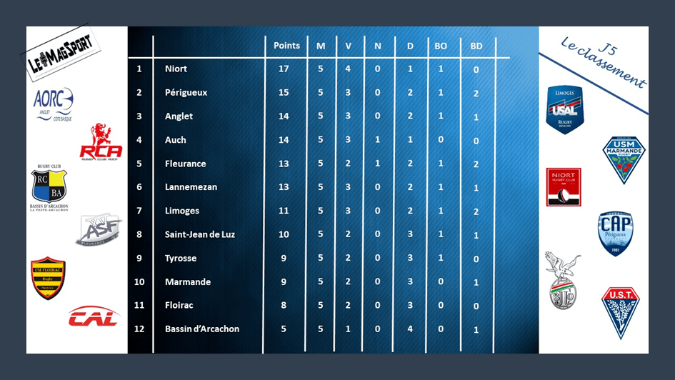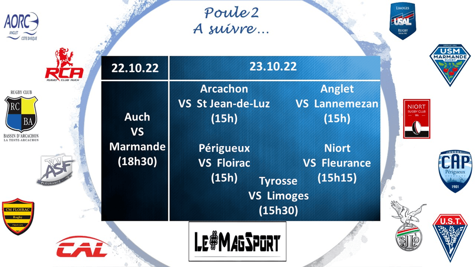 Avec la très belle victoire d’Anglet sur Auch, il n’y a plus d’équipe invaincue en poule 2. Belle opération pour les Basques qui retrouvent le trio de tête mais les Gersois restent au contact. La lutte promet d’être intéressante.