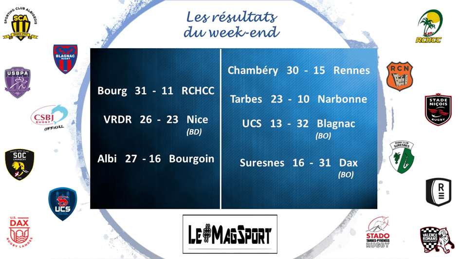 L’Union Cognac Saint-Jean d’Angély, autre relégable à ce jour, avait lui aussi vraiment besoin de points. Malheureusement, une très belle équipe de Blagnac, qui signe en plus le BO, est venue doucher leurs espoirs. Voilà l’UCS en fort mauvaise posture au bout de 5 matchs et voit son manager Fabrice Landreau limogé tandis que le Blagnac Rugby intègre le tableau des qualifiables.