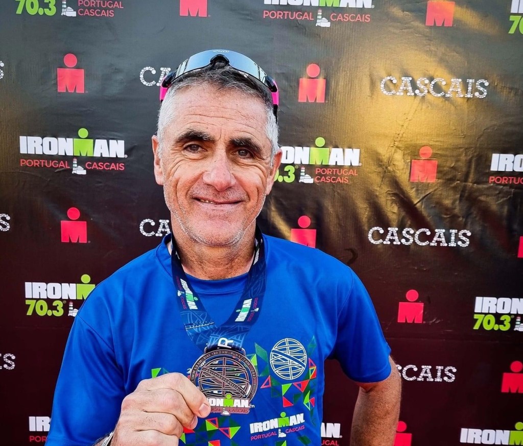 Il vient (seulement de terminer 6éme) du Triathlon de Cascais au Portugal. Champion du Monde dans sa catégorie d’âge en 2019 sur le Triathlon 70.3 , soit un semi marathon, il s’alignait au Portugal sur la distance majeure.
