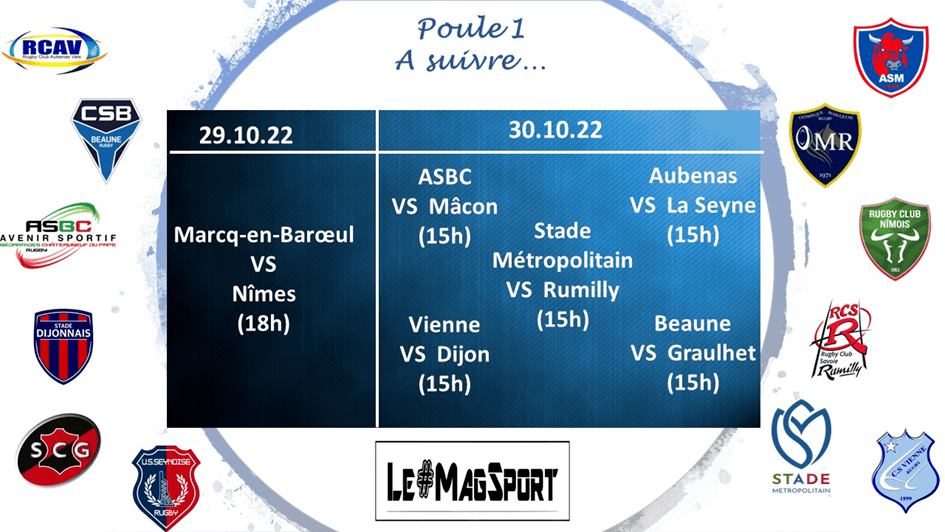 Sans être flamboyant dans le jeu cette saison, La Seyne-sur-Mer se montre solide. Leur 2e succès à domicile, cette fois contre Vienne, leur permet de monter au classement. Quant aux Isérois, fidèles à leur réputation de ne jamais rien lâcher, ils repartent avec un point et, comme à leur habitude depuis maintenant des années, continuent à jouer les premiers rôles sans faire de bruit.