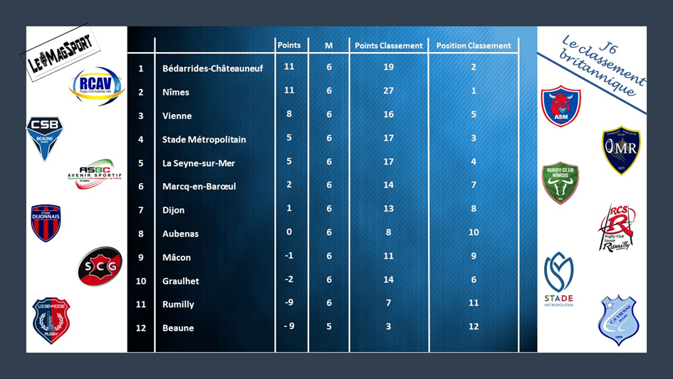 Mais où s’arrêtera Nîmes ? C’est la question qu’on peut logiquement se poser. Très larges vainqueurs de Beaune, les Nîmois signent leur 2e BO en 2 matchs et s’envolent au classement général. Rien ne va plus par contre du côté du CSB qui, à part un match nul lors de la première journée, n’a toujours aucune victoire au compteur et le spectre de la relégation pointe déjà au bout de la 6e journée.