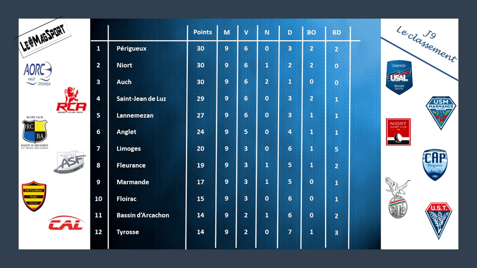 Niort n’a eu aucune pitié pour le Bassin d’Arcachon. 44 points inscrits, un bonus offensif empoché, les Niortais ont fait le match qu’il fallait pour rester au contact de Périgueux et Auch. Les valises sont plus lourdes pour leurs adversaires qui vont devoir se battre jusqu’au bout.