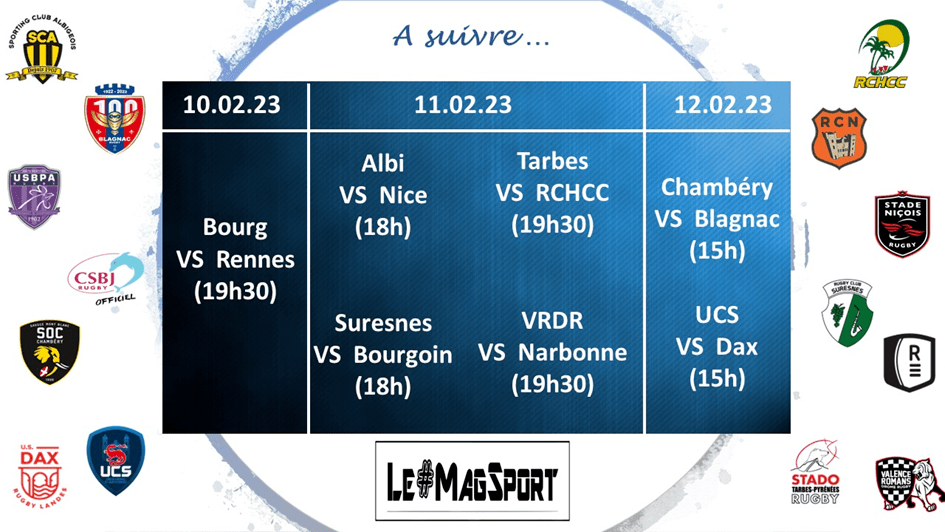 Blagnac est de plus en plus solide et le prouve de week-end en week-end. Toujours intraitables à domicile, les Caouecs ont réalisé un nouveau coup d’éclat en s’imposant sans contestation possible face à Bourg-en-Bresse, un Bourg qui semble avoir perdu de son lustre et de son jeu par rapport à la saison 2020 / 2021, année de sa montée en Pro D2. Les locaux, bien que surpris au bout d’un quart d’heure de jeu, ont recollé de suite au score pour virer en tête à la mi-temps. En 2e période, ils se sont nourris des erreurs et approximations burgienne pour enfoncer le clou et l’emporter. Blagnac creuse le trou sur ses poursuivants à la qualif et peut de plus en plus rêver à une heureuse issue tandis que Bourg encaisse son 3e revers en 5 rencontres et semble dans le doute.