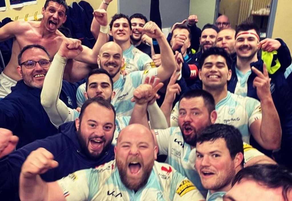 Enorme rencontre entre Rumilly et le Stade Métropolitain avec un suspens haletant jusqu’au bout du bout. Avec un acharnement et une solidarité sans faille, c’est le RCRS qui arrache la victoire par un essai collectif dans les arrêts de jeu, au terme d’un combat de tous les instants. Avec un 10-13 à la mi-temps, on sentait que les débats allaient être animés, une première période marquée par l’indiscipline de part et d’autre aboutissant même à un essai de pénalité pour les locaux. C’est pourtant les Rhônalpins qui reviennent des citrons dans les meilleures dispositions et qui vont prendre un avantage jusqu’à 10 points. Les 20 dernières minutes seront dantesques avec un premier essai de Rumilly suivi d’une pénalité manquée par le Stade qui aurait pu les mettre à l’abri d’un essai transformé. C’est là que les Rumilliens donnèrent le tout pour le tout face à des visiteurs réduits à 14 au pire des moments. C’est toute la famille qui pousse ensemble pour signer une victoire à la 84e minute qui a fait se lever bien des bras au ciel. Voilà le RCSR qui remonte et le Stade Métro qui redescend, suspens garanti jusqu’à la fin.