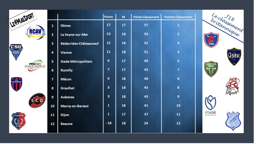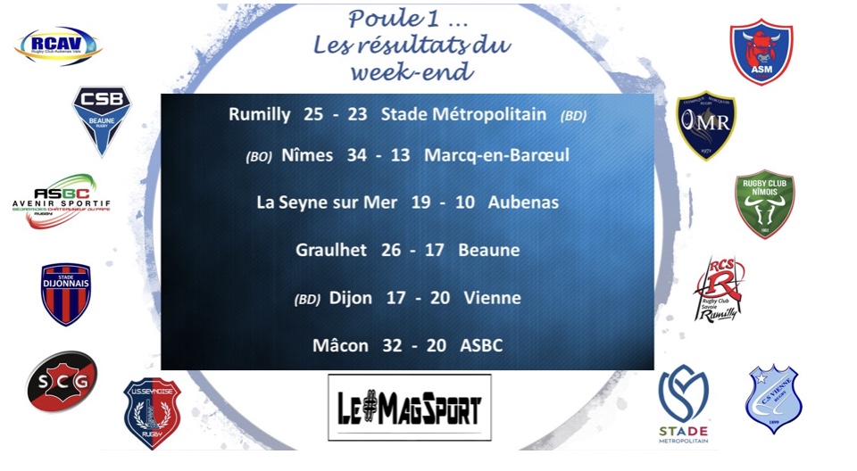 Dijon aura passé une sale, sale soirée sur leur terrain de Bourillot face à Vienne. Déjà, et tant mieux pour lui, plus de peur que de mal pour leur 2e ligne Jean Paul qui a dû être évacué par les pompiers, évacuation qui a nécessité l’arrêt temporaire de la rencontre à la 30e minute. Menés à ce moment-là de la rencontre, les Dijonnais prirent alors l’ascendant sur les visiteurs et voyaient une victoire importantissime leur tendre les bras. Malheureusement pour les rouge et bleu, une pénalité et un essai de pénalité plus tard, fin du match et victoire viennoise. Très amère pour le Stade qui reste donc toujours relégable à ce jour et quasi inespéré pour un CS Vienne qui n’en demandait pas tant.