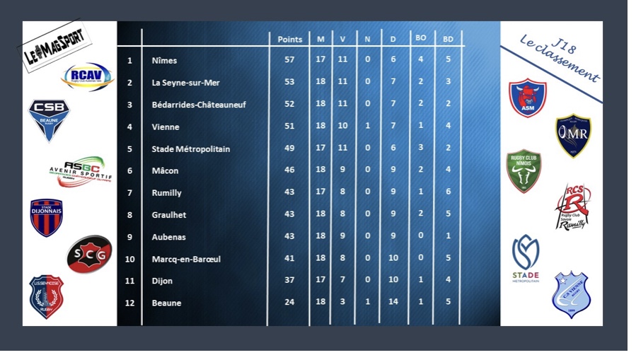 Il semblerait que Mâcon vive une 2e saison dans la saison et leur 3e succès consécutif face à Bédarrides-Châteauneuf du Pape semble conforter cette impression. Une victoire certes collective mais où une individualité ressort en la personne de l’ailier Hamza Martin autour d’un … quadruplé ! Pourtant, à la mi-temps, c’est bien l’ASBC qui menait 12-17 après un essai inscrit en toute fin de première période. La reprise se jouera entre buteurs, Debrach réussissant à ramener son équipe à 2 points de celle de Béda. C’est là que la flèche Hamza fit parler tout son talent avec deux essais en trois minutes, à la 64e et à la 67e. Voilà l’ASM qui signe un probant succès qui leur permet d’entrer pour la première fois de la saison dans le Top 6, eux qui étaient encore relégables il y a de cela quelques journées. Malgré cette défaite, l’ASBC reste bien placée mais devra cependant regarder dans ses rétros pour ne pas se faire surprendre.