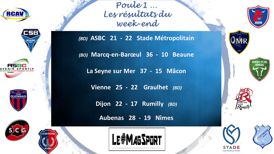 Déjà relégués depuis quelques journées, Beaune ne s’est pas offert le baroud à l’extérieur qu’il aurait pu souhaiter et espérer, Marcq s’est offert son premier bonus offensif mais est désormais suspendu aux résultats des autres équipes avant de connaître son sort lors de la dernière journée.