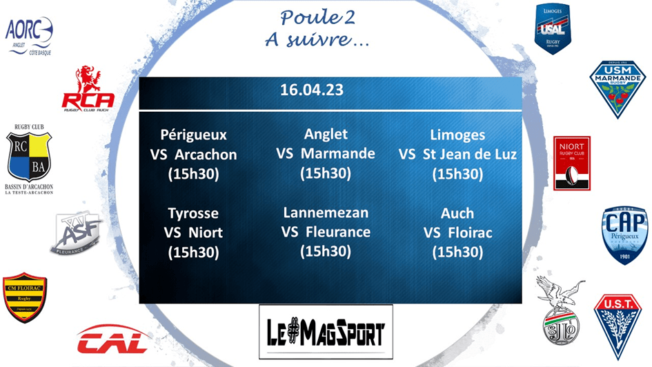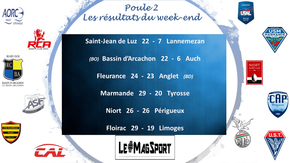 Pour Anglet, qui se déplaçait à Fleurance, c’était un peu « peur sur la ville », une défaite pouvant sceller le destin de l’AORC en Nationale 2. Ils ont lutté, résisté, sont revenus après une première mi-temps manquée mais la défaite d’un point, malgré le point de bonus défensif, ne fait pas du tout leurs affaires. L’ASF avait fait le job sur les 40 premières minutes avec efficacité et pragmatisme pour mener 24-13 à la mi-temps. S’ils ont plutôt géré la seconde, ils ont bien failli se faire surprendre par des Basques qui sont revenus fort pour finalement mourir à 24-23. Après un début de saison un peu ratée, Fleurance est arrivé à remplir son objectif de qualification en play-off. Quant à Anglet, la situation est très tendue et tout se jouera lors de la dernière journée.