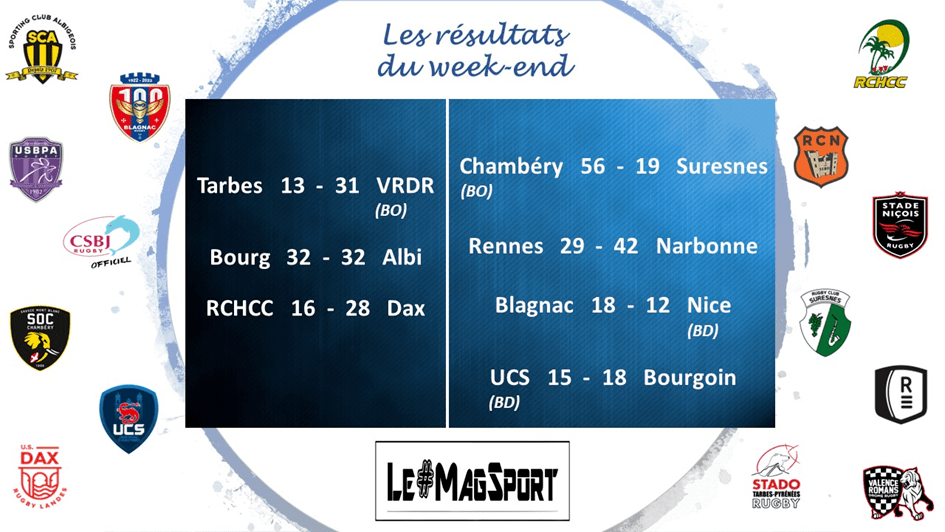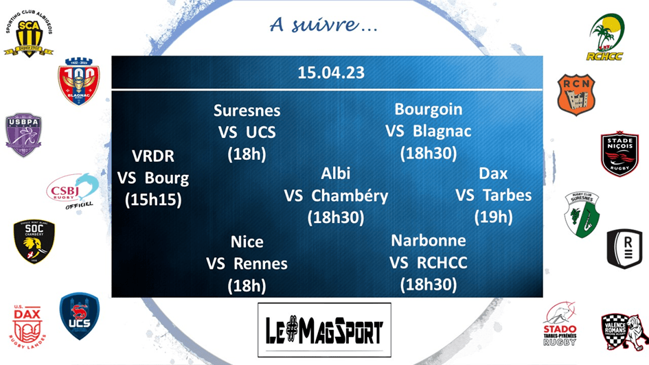 Les Franciliens s’offrent un essai à la 57e mais le retard accumulé est trop important et le jeu pas assez en place pour tenir des chambériens qui se fendront même d’une 8e banderille à la 79e, portant l’estocade finale et le score à 56-19. Bien que distancé, Chambéry n’est pas largué et jouera son va-tout lors de ses deux dernières rencontres. Pour Suresnes, assuré de son maintien quoi qu’il arrive, les regards sont déjà tournés vers 2023-2024.