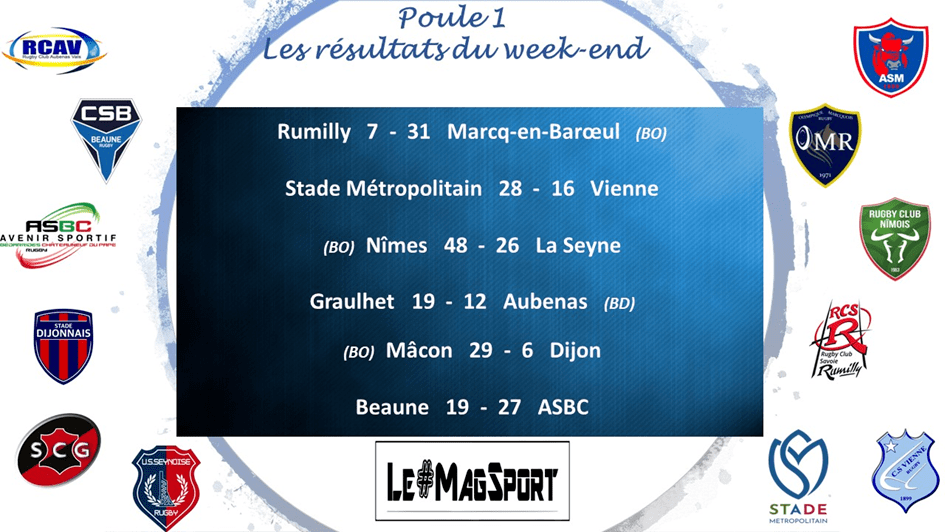 – Le Stade Métropolitain rencontrera le vainqueur de Auch – Aubenas. (Match 4)