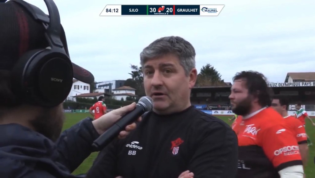 Le co-entraîneur du Sporting Club Graulhetois, Benoît Bellot est revenu à notre micro sur la défaite des rouges et noirs en terre basque (30-20). Pour Benoît Bellot, la déception et la frustration dominaient après avoir mené durant une grande partie de la rencontre (13-20 à la 60 eme) face à la lanterne rouge de la poule 1 de Nationale 2. Les graulhetois qui étaient venus dans l’antre du Saint Jean de Luz Olympique pour débuter 2024 sur les chapeaux de roue, sont repartis du Pavillon Bleu Kechiloa sans aucun point, et passe à côté d’une belle opération comptable au classement. Toujours 6eme ex æquo, les hommes du trio Bacca/Bellot/Gimbergues vont avoir du pain sur la planche ce dimanche à Pelissou lors de la réception d’u e des grosses écuries de la division : les ex pensionnaires de Nationale 1 du Rennes Étudiants Club .