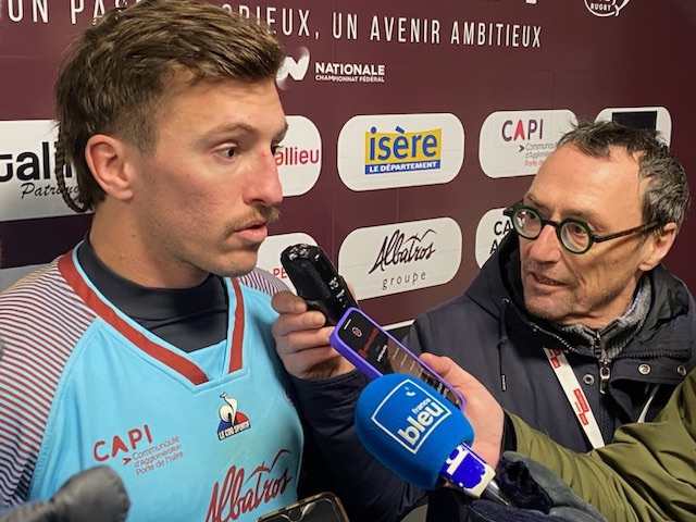 Le 3/4 aile Berjallien est revenu au micro de notre correspondant en Rhône Alpes, Fred Charvet, sur la victoire du CSBJ lors du bouillant derby isérois (27-3). Durant cette rencontre dont Bourgoin a glané le bénéfice du point de bonus offensif, une des attractions de la rencontre fut la couleur grenat adoptée par le CS Vienne pour affronter leurs voisins. Une réponse symbolique a l’imbroglio ayant émaillé le match aller qui, n’a pas eut l’air de déstabiliser outre mesure le supersonique ailier des ciels et … grenats.