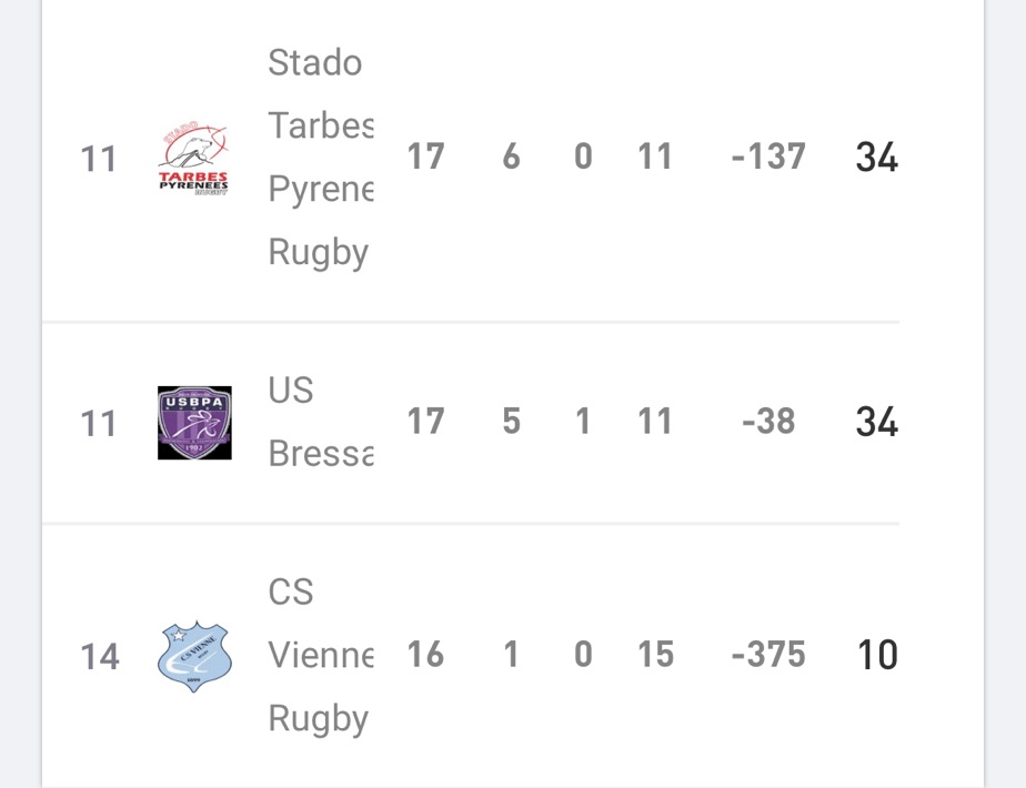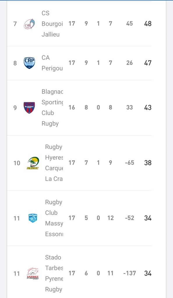 Et c’est la que le bas blesse et risque de faire de nombreux lésés arithmétiques (Narbonne, Albi, Suresnes, Perigueux, Bourg et Tarbes, Bourgoin ) , tout en rompant l’équité sportive initiale. Avec une mention spéciale à Narbonne qui dégringolerait au classement par ce coup de trafalgar mathématique tout en ne glanant qu’un modique point .