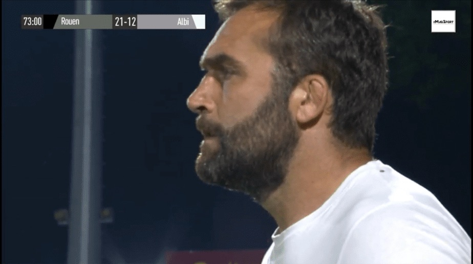 Mais Laurent Cardona, arbitre qui restera le grand acteur de ce choc, en a décidé autrement. Les Albigeois se ruent, les Rouennais résistent, plongent, s’accrochent toujours à la limite de la sanction, mais l’arbitre ne bronche pas, malgré un Arnaud Méla qui sur le bord de touche s’époumone dans un Diochon aussi silencieux que la cathédrale Notre Dame de Rouen, à galvaniser ses hommes : « Continuez, Continuez , il va vous la donner , il est obligé de vous récompenser..! »