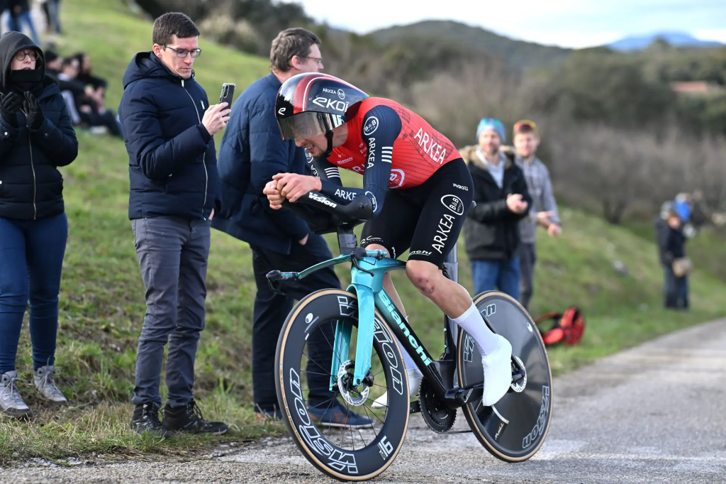 L’affaire était entendue pour Kévin Vauquelin. Il prenait le maillot couleur corail de leader. Il tenait le bon bout avant la dernière levée, un contre la montre entre Alès et le site de l’Ermitage.