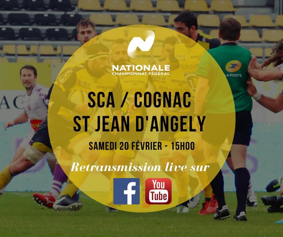 Retrouvez la rencontre de Nationale lors de la 18 eme journée qui oppose les jaunes et noirs du Sporting Club Albigeois , aux charentais de l’Union Cognac Saint Jean d'Angely en direct live tv dans « Le #MagSport / H2G » avec Loïc Colombié, Arthur Castant, et Jean Christophe Bacca dès 14h45 ce samedi 20 février 2021. Une retransmission à retrouver sur le facebook officiel du SCA et sur la page you tube du Sporting Club Albigeois . Vivez dans votre canapé ce choc du … Lire la suite #DirectRugby : suivez (dès 14h45) le « Live vidéo» Albi Vs Cognac (#Nationale #J18)