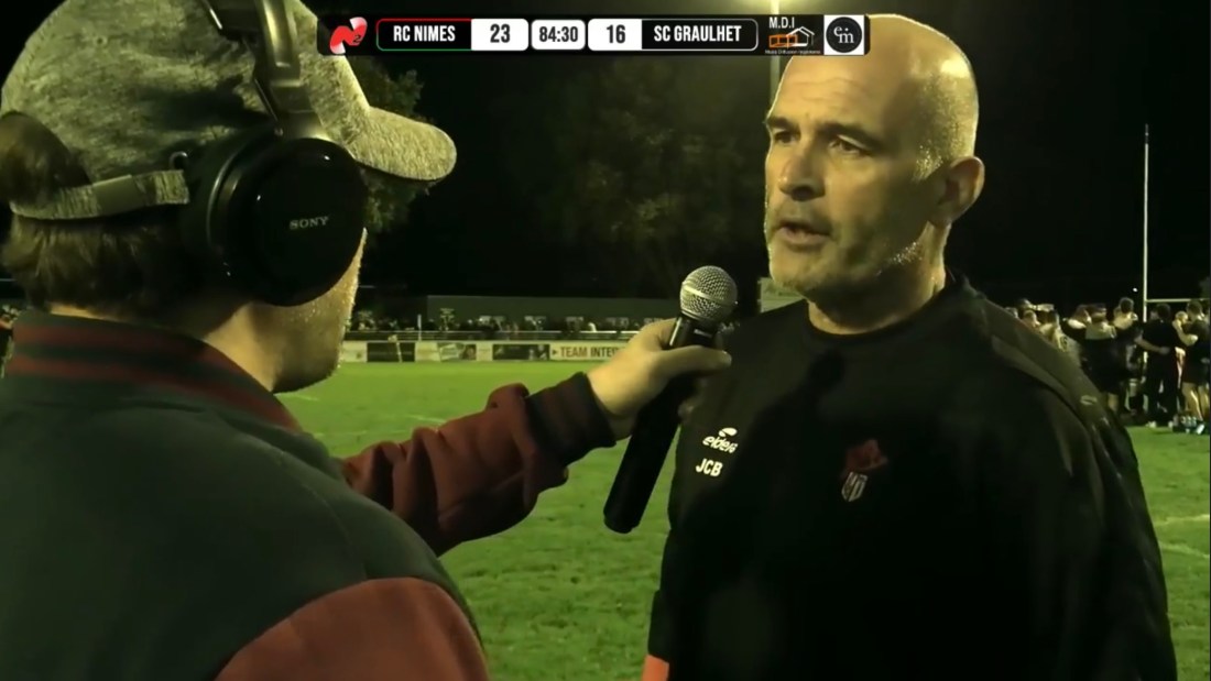 Jean Christophe Bacca, le co-entraîneur du Sporting Club Graulhetois était un technicien fier de ses hommes malgré la défaite (23-16) en terres nîmoises. Avec un effectif remanié les graulhetois ont tenu la dragée haute à des gardois co-leaders de la poule 1 de Nationale 2 et repartent du stade Kaufman avec un point de bonus … Lire la suite #Rugby – Nationale 2 / Jean Christophe Bacca (Graulhet) : «On n’est pas là par hasard … nous ce n’est pas la Fédération qui est venue nous chercher!»